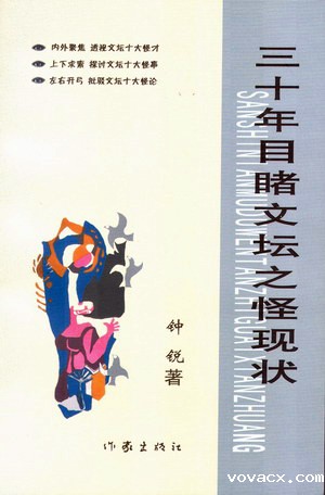 近日,钟锐潜心创作的章回体长篇评传《三十年目睹文坛之怪现状》由作家出版社出版,这是作者近三十年间亲目所睹文化、文艺、文学这文坛三界一系列怪现状的真实记录;也是作者在此期间撰写的作家研究、文艺批评和文化论争这三部分文章的巧妙结集。全书按人、事、论分成上、中、下三卷。上卷:内外聚焦,透视文坛十大怪才;中卷:上下求索,探讨文坛十大怪事;下卷:左右开弓,批驳文坛十大怪论。每卷十回,每回一怪,一共30回,30怪,30万字。本书形式上借鉴清末吴趼人的长篇小说《二十年目睹之怪现状》及其《近十年目睹之怪现状》,内容上撇开官场,专写文坛;不作虚构,纯粹纪实。通篇夹叙夹议,亦评亦传,既可看,又耐读,做到内容与形式较为完美的统一。本书旨在弘扬优秀传统民族文化,探讨中国特色社会主义文化的创新之路,打破当下文坛少数专家学者的垄断局面和话语霸权,倡导真正人民大众的批评,并以此推动社会主义文化的大发展、大繁荣。
