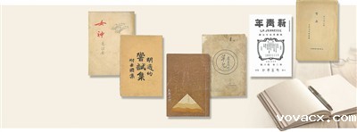 图为见证中国新诗诞生的《新青年》以及胡适(《尝试集》)、郭沫若(《女神》)、冰心(《繁星》)、康白情(《草儿》)、徐志摩(《志摩的诗》)等诗人的早期新诗集。