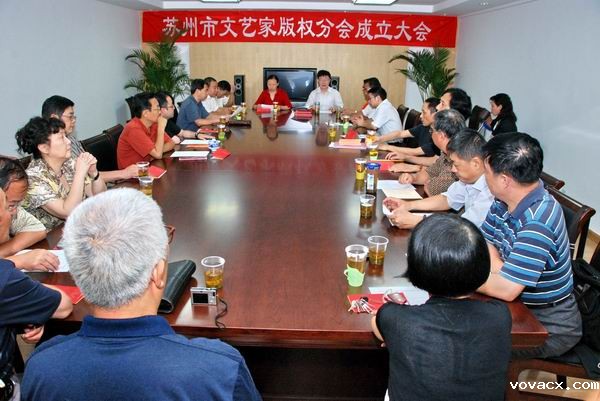 成立大会通过了《苏州市文艺家权益保障委员会(苏州市版权协会文艺家分会)章程》,选举产生了第一届委员会,聘请江苏立泰律师事务所吴卫华律师为法律顾问。成立大会上,市文联党组书记、副主席朱建华在讲话中要求,要积极发挥文艺家版权分会的作用,宣传版权保护的重要性,提高法律意识,主动积极开展维权活动,积极向社会推介文艺家创作成果,发挥文学艺术作品的延伸作用。