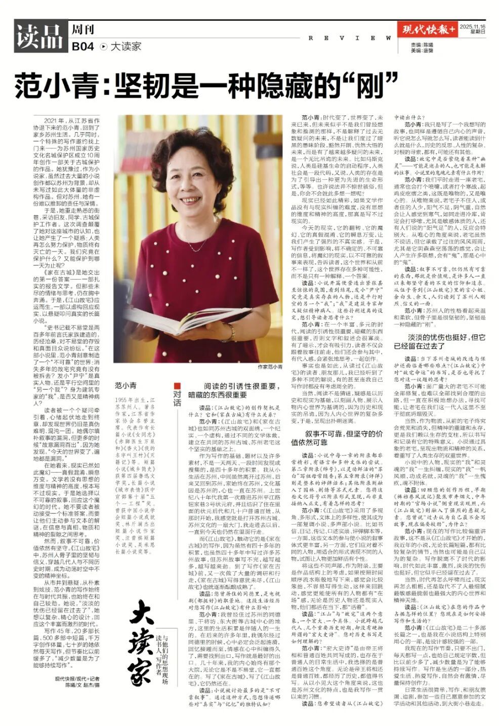 2021年,从江苏省作协退下来的范小青,回到了家乡苏州生活。几乎同时,一个特殊的写作邀约找上门来——为苏州国家历史文化名城保护区成立10周年创作一部关于古城保护的作品。她犹豫过,作为小说家,虽然过去大量的小说创作都以苏州为背景,却从未写过如此大体量的非虚构作品。但对苏州,她有一份难以推卸的责任与深情。