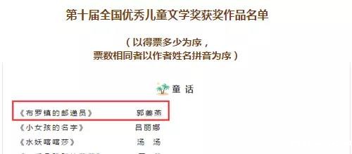 值得一提的是,在童话类获奖作品中,《布罗镇的邮递员》以得票数最高的成绩获奖!