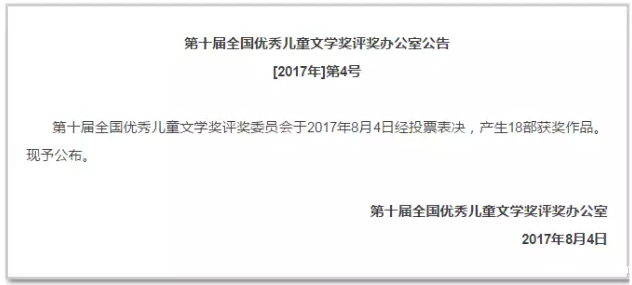 8月4日,第十届全国优秀儿童文学奖评奖委员会经投票表决,产生18部获奖作品。江苏作家郭姜燕的童话作品《布罗镇的邮递员》荣获该奖。