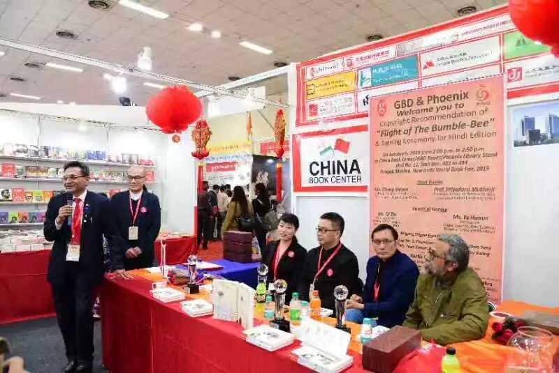 当地时间1月5日下午2时,在新德里国际书展凤凰集团展台,江苏凤凰少年儿童出版社隆重举办《野蜂飞舞》版权推介会。中国驻印度使馆文教参赞张建新、秘书杨俊,尼赫鲁大学教授、印度汉学家莫普德,印度GBD-BOOKS出版社总裁高崖,江苏凤凰出版传媒集团办公室主任祁智,江苏凤凰出版传媒股份有限公司国际拓展部主任俞慧洵,江苏凤凰少年儿童出版社社长助理徐健,以及当地出版社和版权机构代表,当地作家和媒体代表等出席会议。