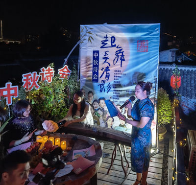 中秋节晚上,如皋市作家协会在古城东大街清逸轩举办了”起舞弄清影”中秋诗会,18 位诗歌爱好者在银色的月光下,用诗歌望月,用诗歌祈愿,用诗歌,致敬文化。赴中秋的月望之约,他们像诗人那样,倾注情感,描绘那轮圆月;像古人一样,围坐一堂,用诗、歌交流,掬一捧月色,洗濯铅华。《海上升明月》 《满亭新月》,《荷塘月色》, 《母亲的月饼》 ,《故乡的中秋》 《海上升明月》《月是故乡明》《春江花月夜》《一剪梅 . 红藕香残玉簟秋》《中秋》《印度洋的思念》 等著名诗篇 。月有阴晴圆缺,人有悲欢离合,此事古难全,但愿人长久,千里共婵娟!诗会在齐诵《但愿人长久》中落下帷幕。